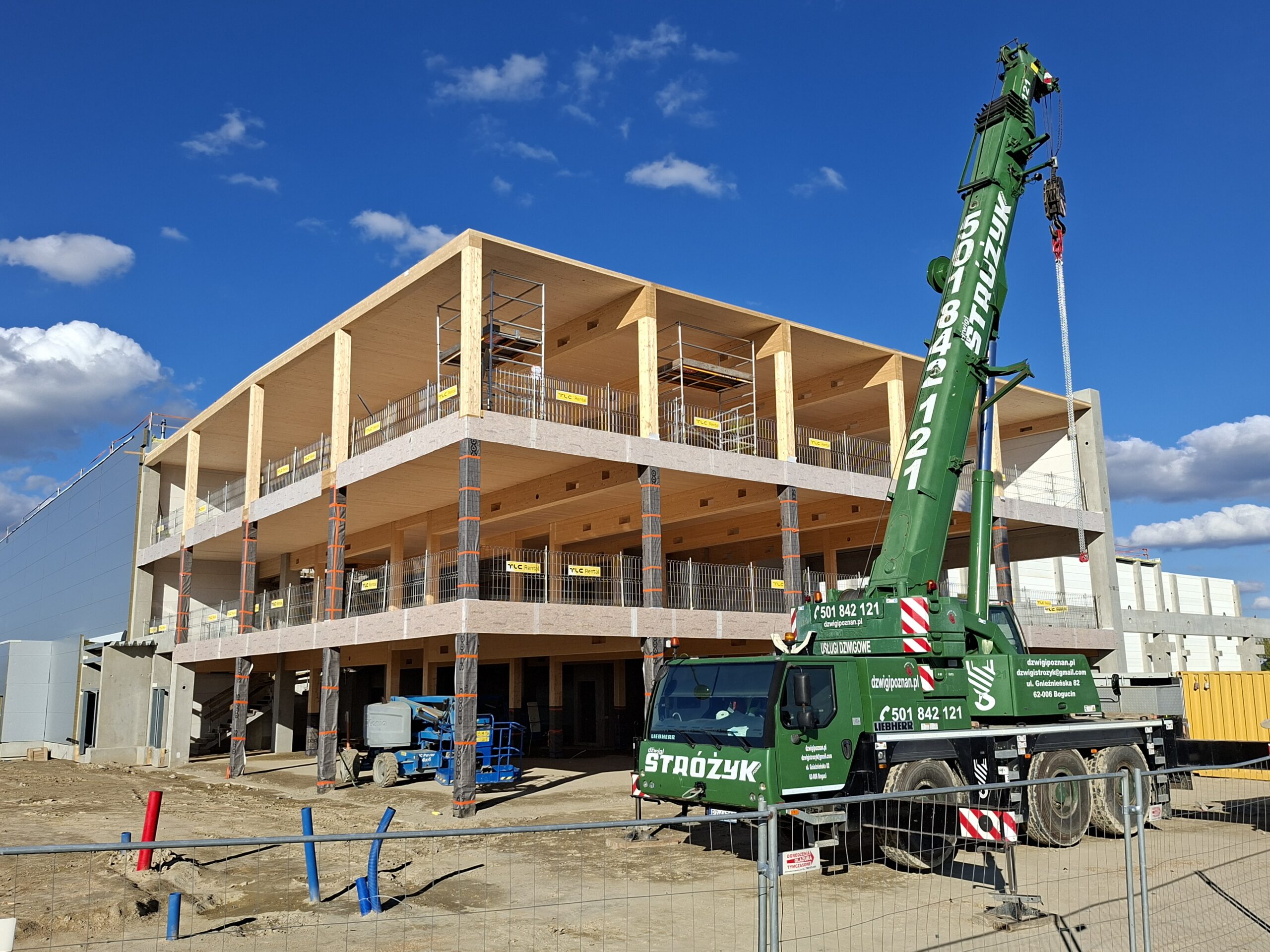 PROWOO Sp. z o.o. zakończyło realizację konstrukcji największego budynku biurowego w Polsce wykonanego w technologii CLT – nowej siedziby firmy HOMAG w Środzie Wielkopolskiej.
